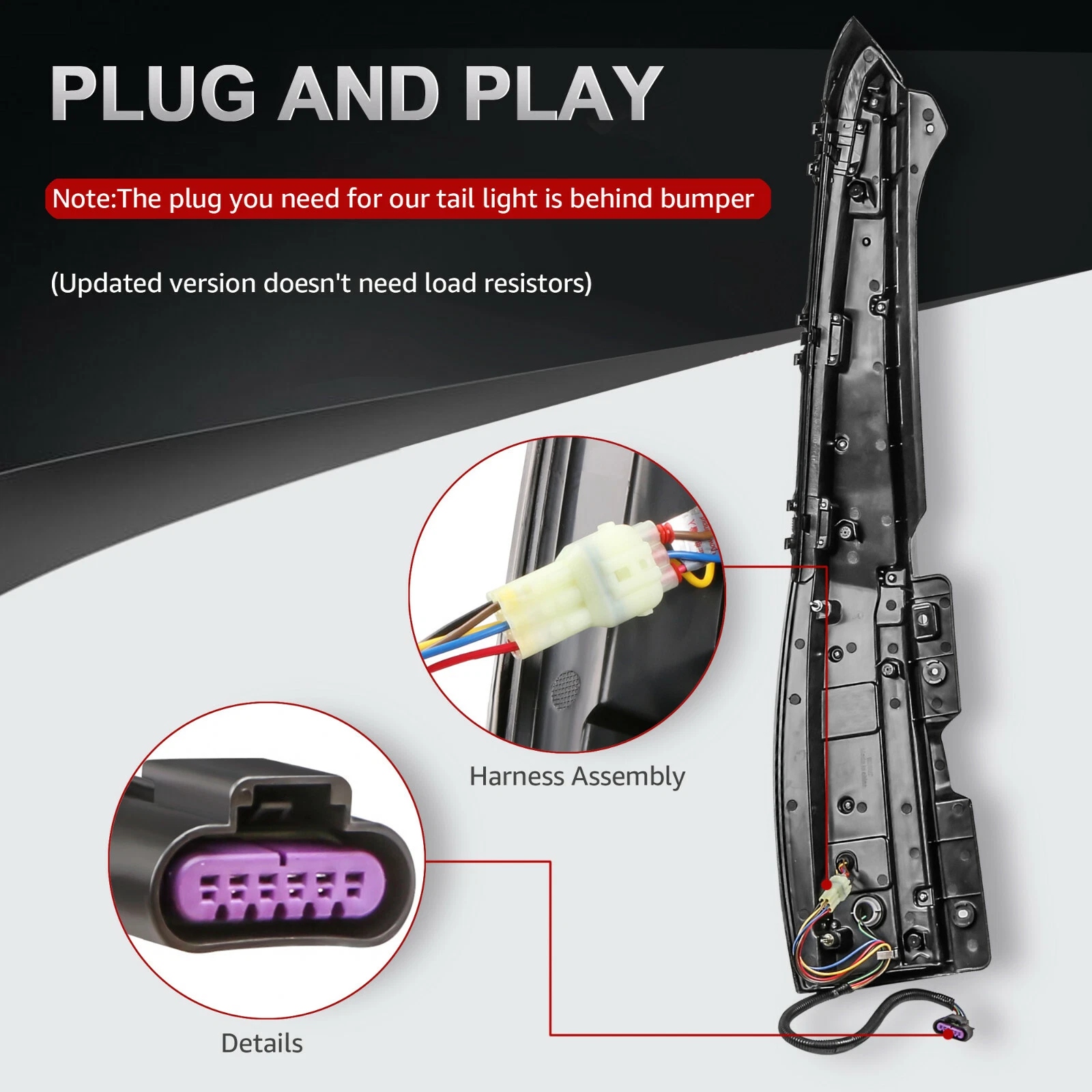 • Note:the plug is behind bumper and not from the light. (Plug is 6 Holes Plug with 5 Pin)